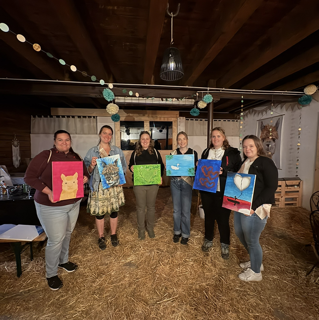 Kreatives Malevent mit Acrylfarben und Leinwand. Beschreibung siehe Paint & Drink
