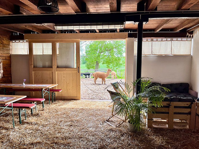 Ort: Alpaka-Lounge mit Aussenbereich (bei schönem Wetter)