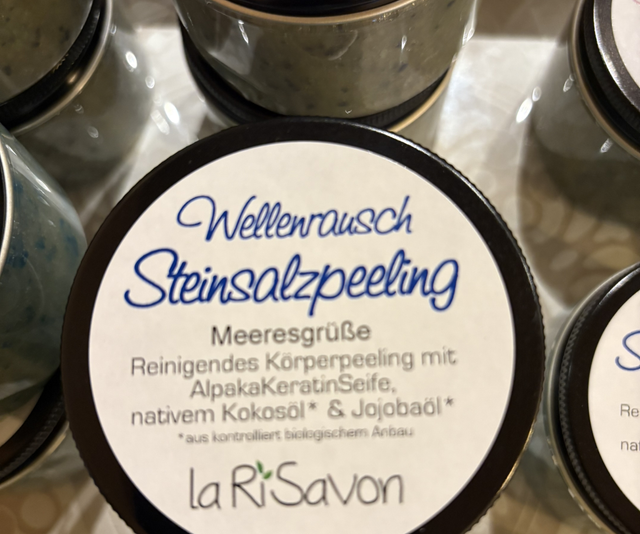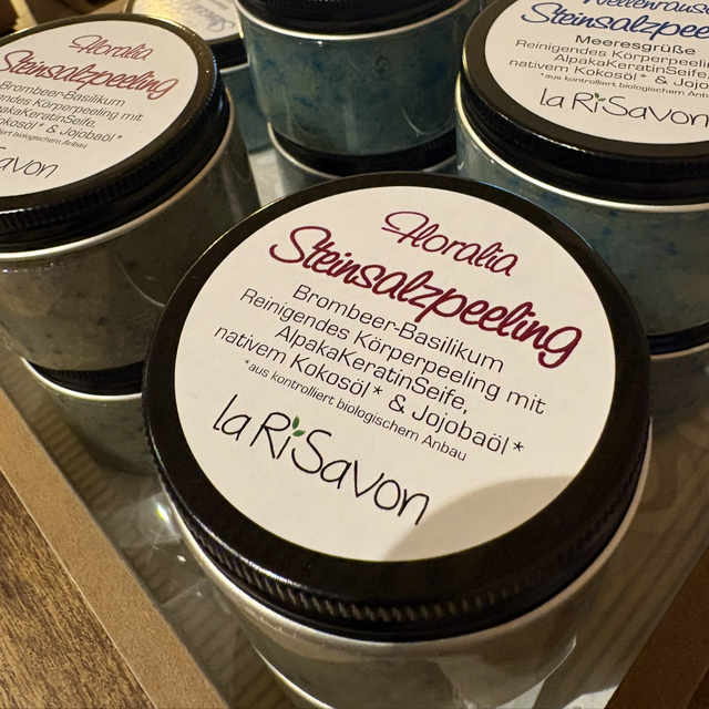 laRiSavon´s wunderbare Körperpeelings entfernen abgestorbene Hautschüppchen, fördern die Durchblutung und verbessert das Hautbild. Nach dem Peeling fühlt sich die Haut – durch den Zusatz von hochwertigen Ölen – wunderbar gepflegt an. Duftet auch noch herrlich am nächsten Tag. Das Peeling enthält zusatzlich Alpaka Keratin Seife.